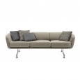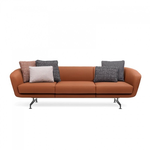 Một chiếc ghế sofa có chân kim loại kiểu cổ điển, phần tựa lưng và tay vịn, cùng phần thân được tích hợp để tạo sự êm ái cho ghế.