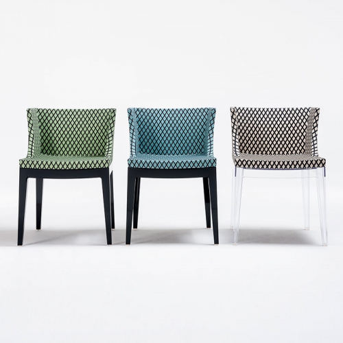 Các mặt hàng đại diện của Kartell được bọc bằng vải Memphis