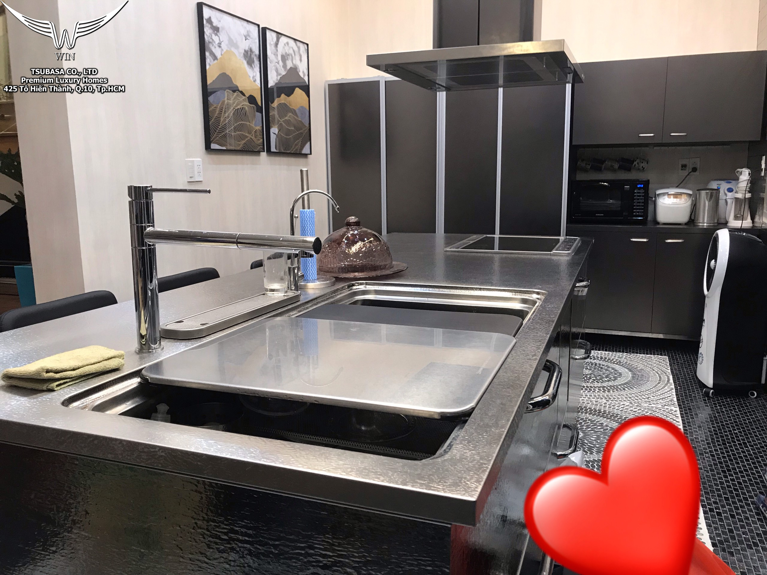 Không gian bếp là khu vực mà tất cả thành viên của gia đình thường xuyên lui tới và tương tác cùng nhau, là nơi phải chịu tác động của những vết bẩn cứng đầu như dầu mỡ, nước sốt... nên có yêu cầu rất cao về độ an toàn, dễ dàng vệ sinh và độ bền. Chính vì vậy, tất cả vật liệu, nội thất mà chúng tôi lựa chọn đều là sản phẩm cao cấp được nhập khẩu trực tiếp từ Nhật Bản có chất lượng tốt nhất, hiệu ứng ấn tượng, độ bền đẹp cao, dễ dàng khi vệ sinh các vết bẩn.