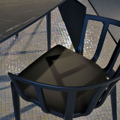 Mặt bàn có thiết kế bằng đá cẩm thạch chân thực. Thiết kế đơn giản và sang trọng. Lớp hoàn thiện siêu lì với giảm độ bóng là sự kết hợp tốt nhất với kết cấu lì của ghế ăn "Venice Mat".